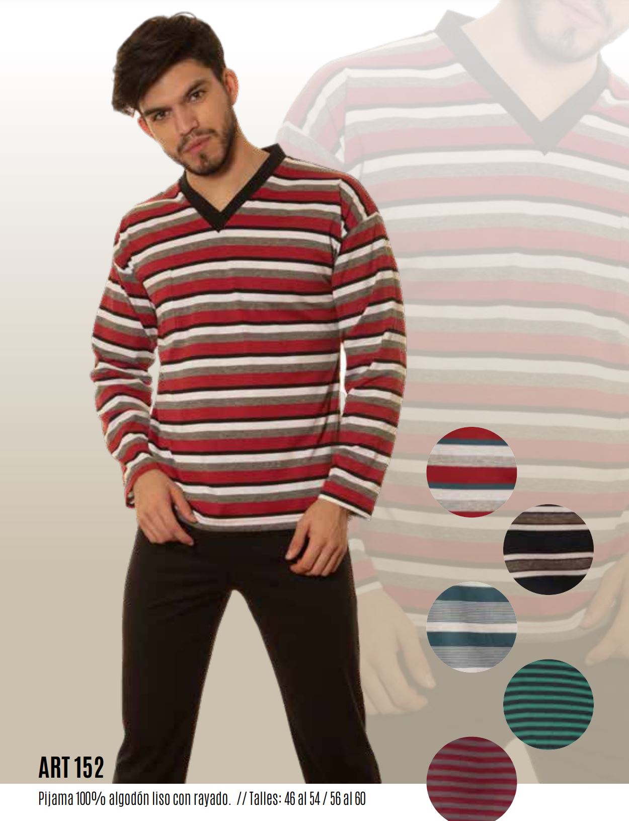 Pijama jersey Casaca rayada puro algodón Manga larga Pantalón largo. Talles 46 al 54 y del 56 al 60. Colores surtidos sujetos a disponibilidad de stock. Precio variable según el talle.