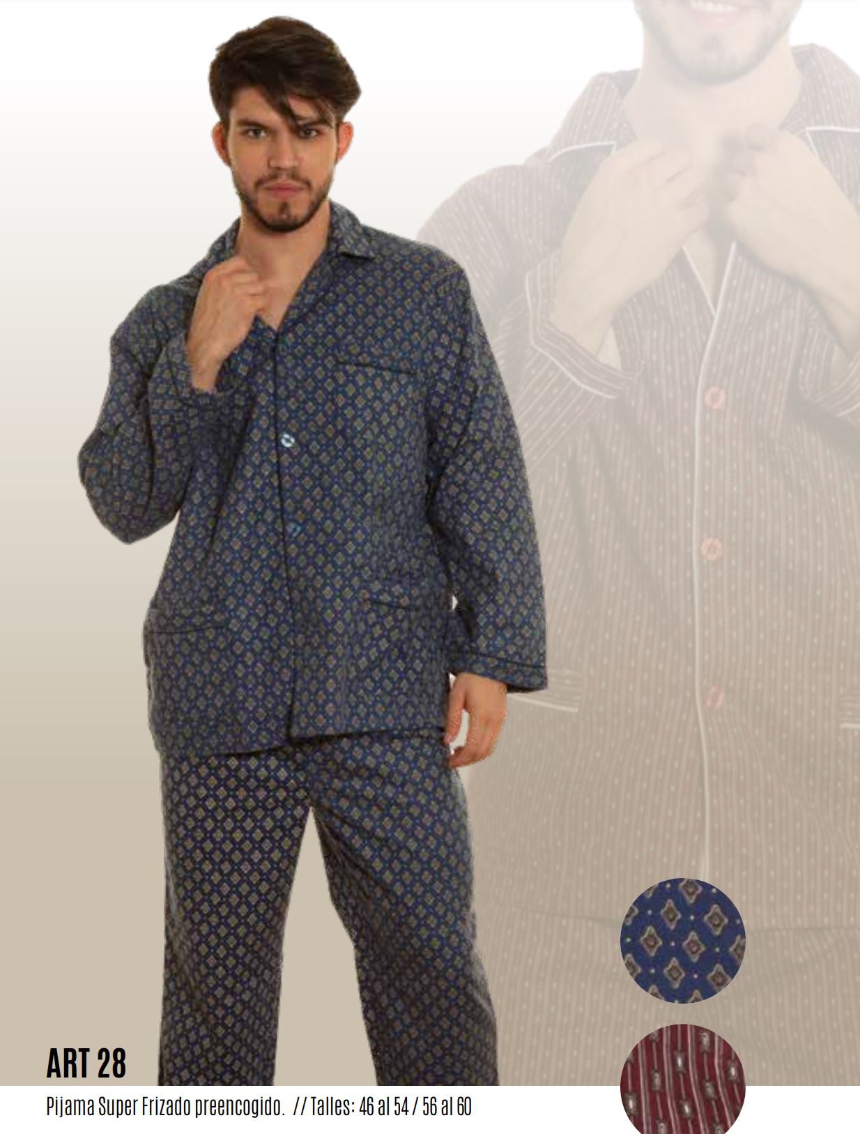Pijama Super Frizado Preencogido. Talles 46 al 54 y del 56 al 60. Colores surtidos sujetos a disponibilidad de stock. Precio variable según el talle.