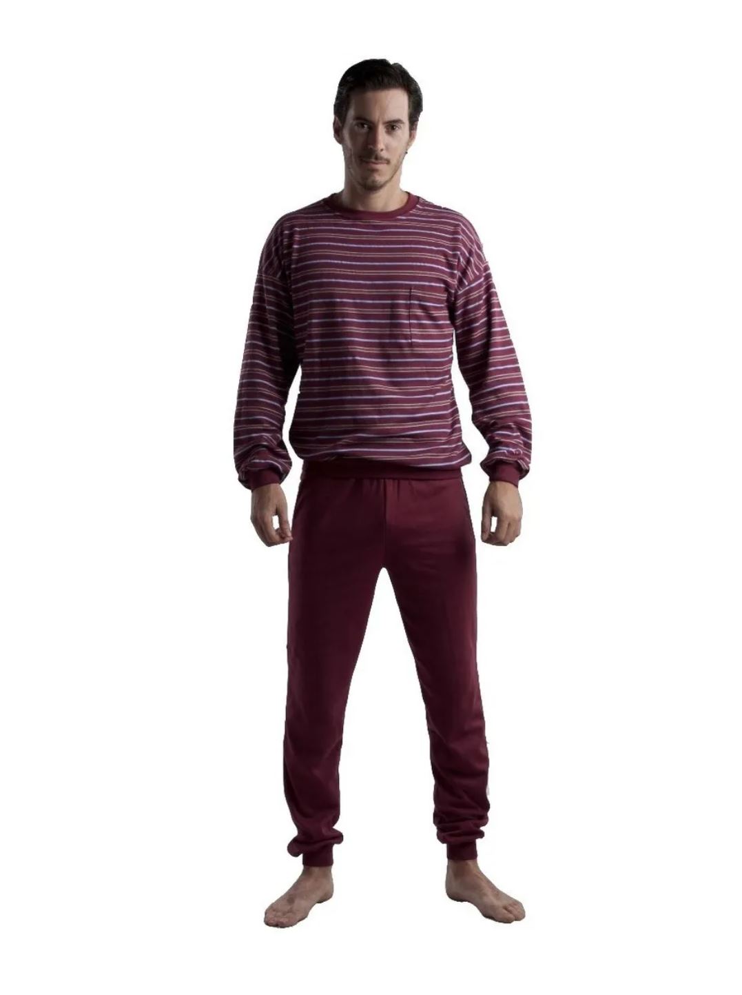 Pijama Doble Interlock Casaca Rayada Pantalón Liso – Art. 52